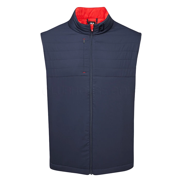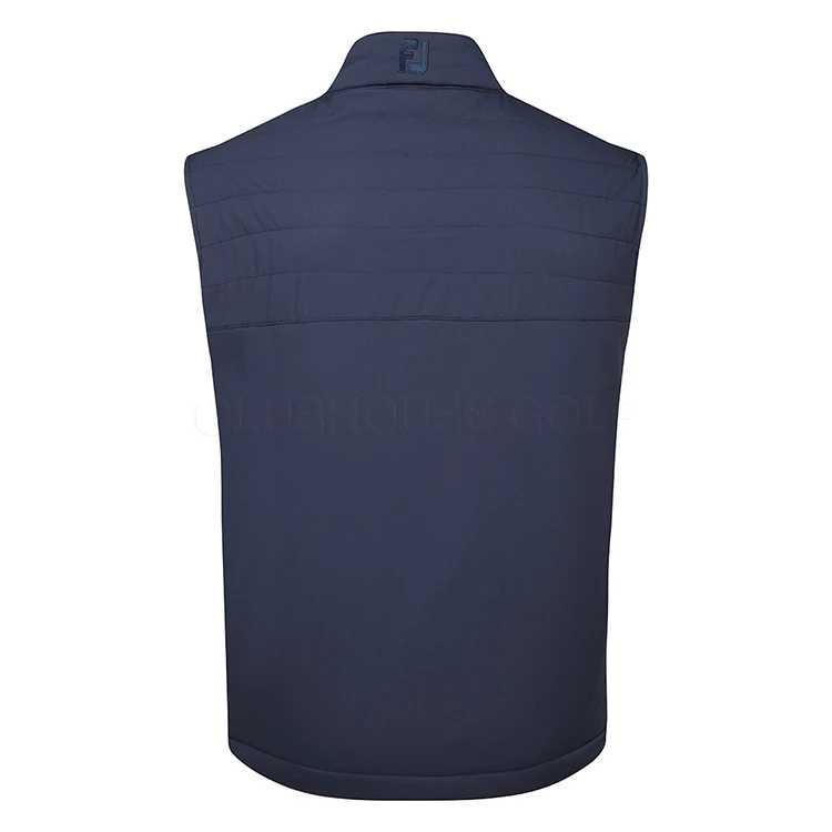 | FootJoy FJ Hybrid Golf Wind Vest Thermal Insulation With Padded Quilted Design The FootJoy FJ Hybrid Wind Vest is the perfect garment for those cold windy days on the course with 100% windproof protection and added thermal insulating design. Made from 100% polyester, the FJ Hybrid Wind Vest is the ideal garment for cold, windy days when extra warmth is needed. It can also be worn in light rain showers and offers light shower proof protection along with the highly insulating design that retains body heat. The woven panel overlay helps trap body heat to retain your core temperature even on the coldest of days. The FJ Hybrid Wind Vest has a quilted design with zip contrast detail and the FJ brand logo on the left collar for added style. With 2 side pockets and full zip design, this thermal wind garment offers exceptional performance with a premium look. |