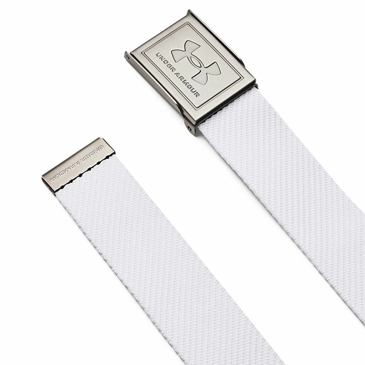 | Under Armour Webbing Golf Belt Reversible Strap With Steel Embossed Buckle Get that tour look with the Under Armour Webbing golf belt. This belt is a great accessory to compliment your golf attire, it’s made of durable polyester webbing material for a classic look and finished with a steel embossed buckle. – Durable Polyester Webbing Strap – Steel Embossed Buckle – Reversible Design – One Size Fits All (Adjustable Up To 42″) |